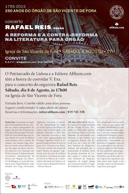 Concerto de órgão na Igreja de São Vicente de Fora por Rafael Reis, em Lisboa
